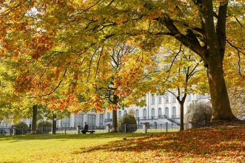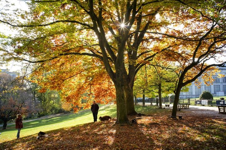 在比利时布鲁塞尔利奥波德公园拍摄的秋景。新华社记者张铖摄