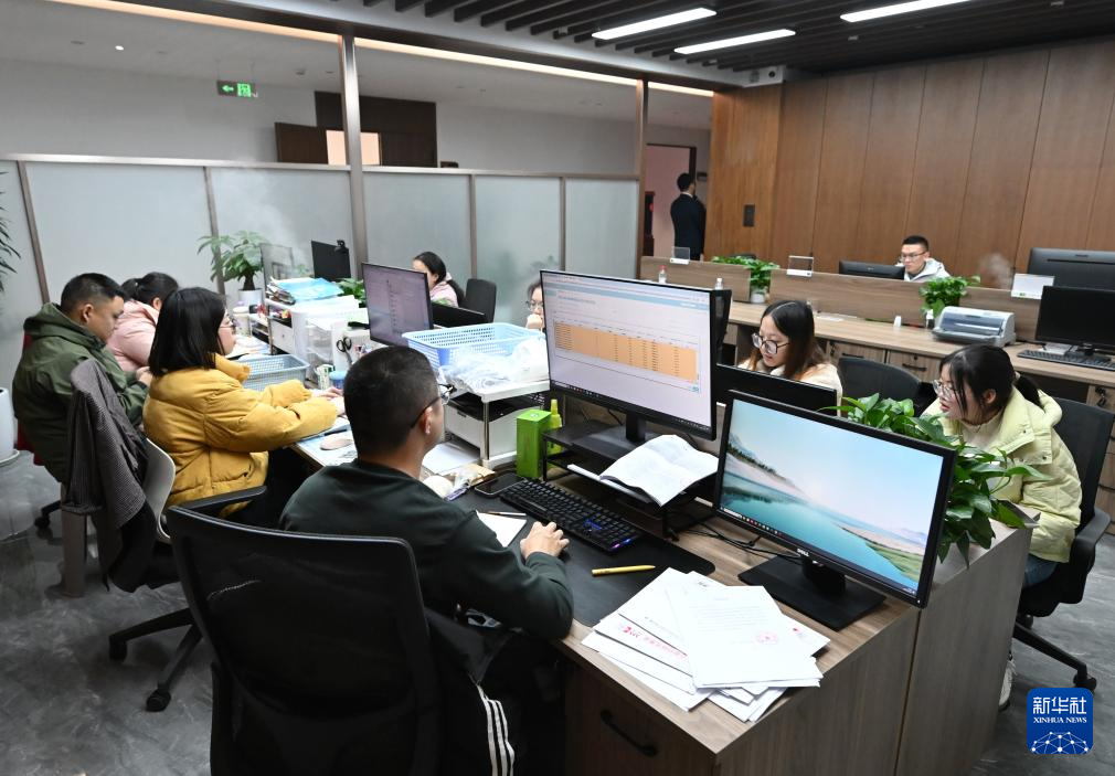12月22日,一家入驻锦宾国际酒店的企业员工在办公。新华社记者 刘坤 摄