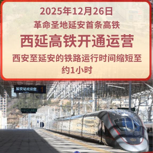12月26日上午,随着首趟“复兴号”智能动车组列车驶出延安站,西安至延安高速铁路正式开通运营,革命圣地延安进入“高铁时代”。