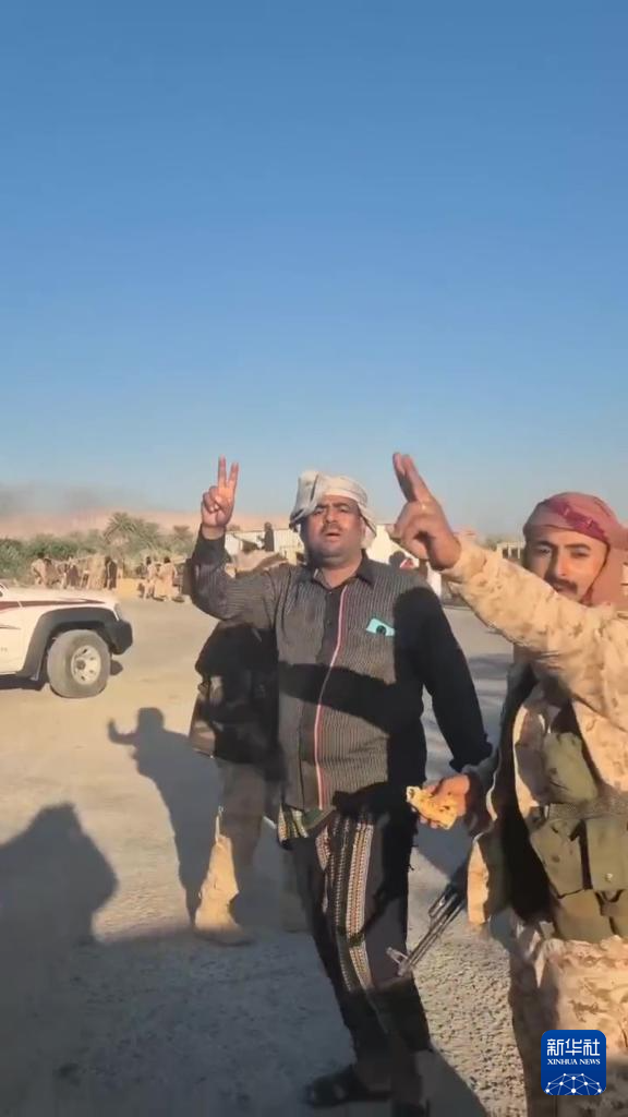 这张南方过渡委员会提供的视频截图显示,12月26日,在也门哈德拉毛省,南方过渡委员会的武装人员在空袭现场附近。新华社发