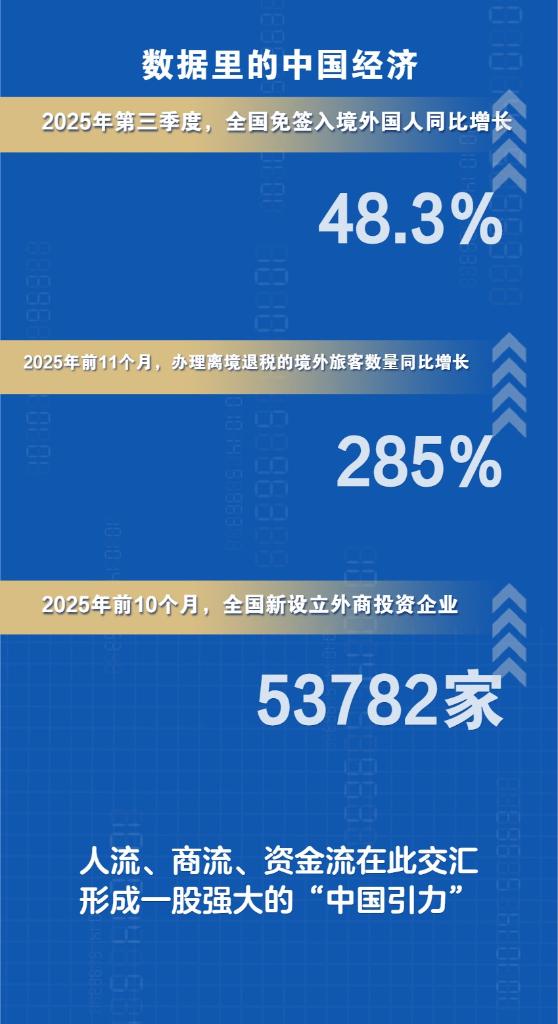 新华社上海12月26日电(记者王默玲、周蕊、桑彤)免签政策持续扩容,“中国游”热潮席卷全球;离境退税便捷高效,“中国购”热度持续攀升;外资企业加速布局,“投资中国”信心坚定。2025年,人流、商流、资金流在此交汇,形成一股强大的“中国引力”。