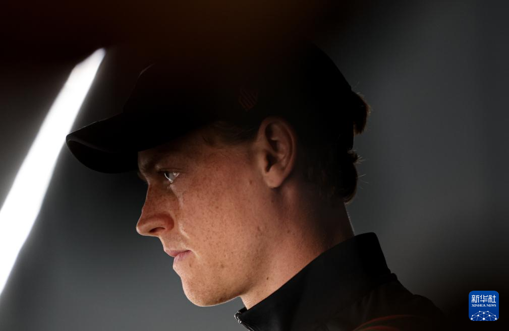 这是2025年5月10日,辛纳在网球ATP1000罗马站男子单打第二轮比赛前。新华社记者 李京 摄