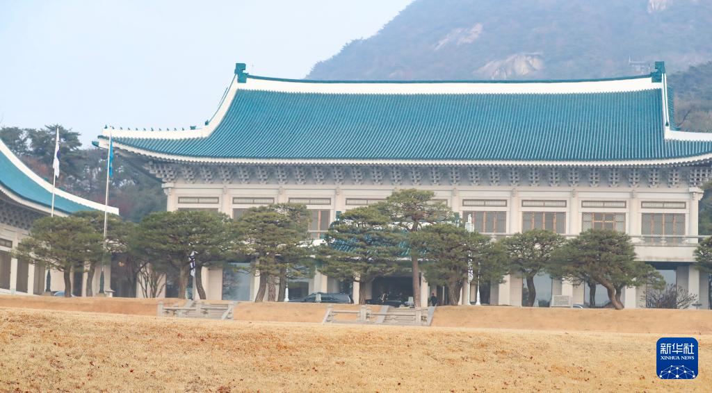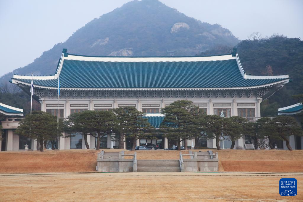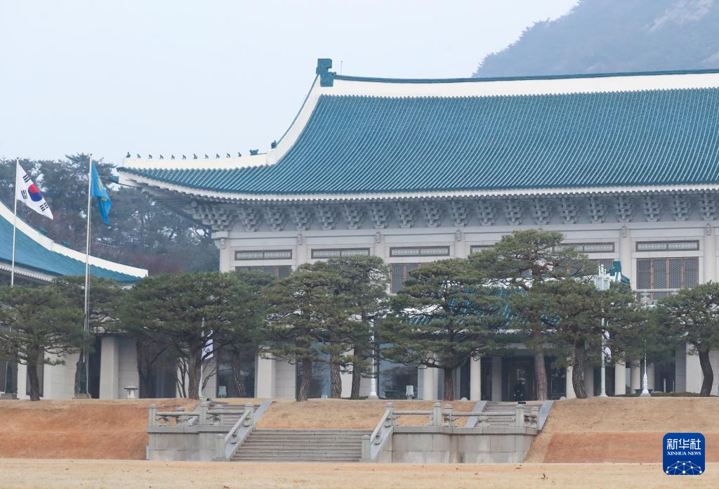 12月29日,在韩国首尔,青瓦台主建筑前飘扬着韩国国旗和象征韩国国家元首的“凤凰旗”。新华社记者 姚琪琳 摄