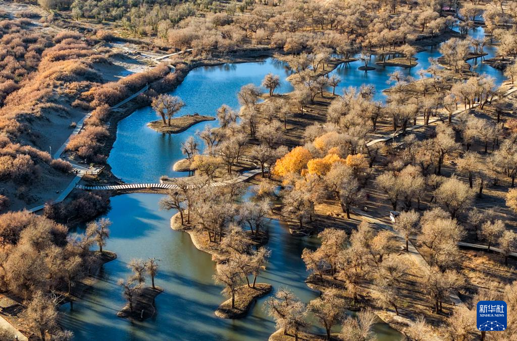 这是2025年10月30日在内蒙古额济纳旗拍摄的胡杨林(无人机照片)。