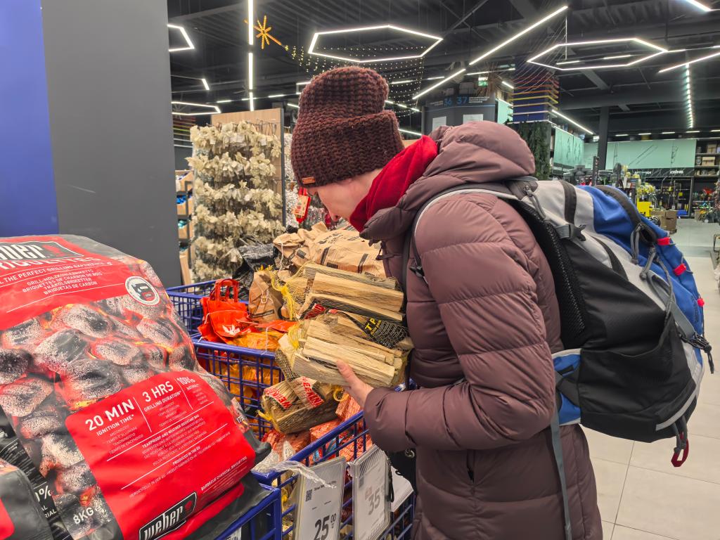 11月9日,乌克兰基辅市民在商场购买木材,以便在停电期间生火取暖。新华社记者李东旭摄