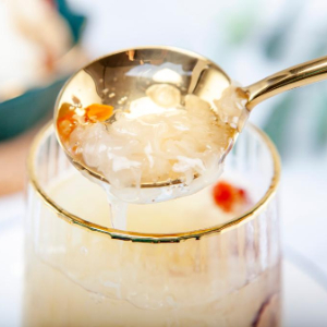 这是开水冲泡后的冻干银耳羹。