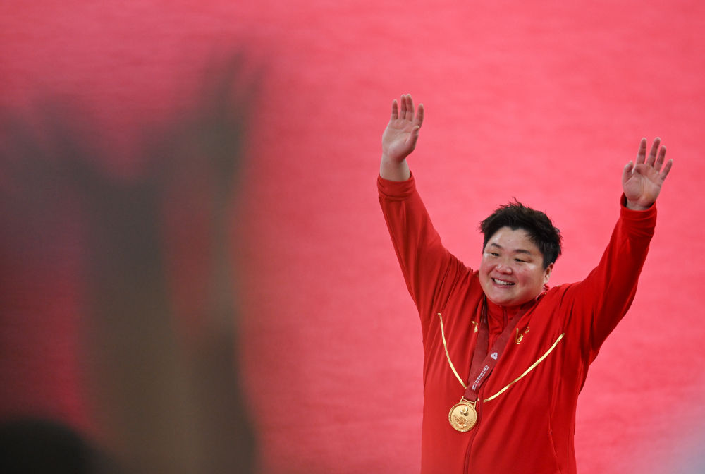 ↑11月16日,河北队选手巩立姣在第十五届全国运动会田径女子铅球决赛中,最终,她获得冠军。