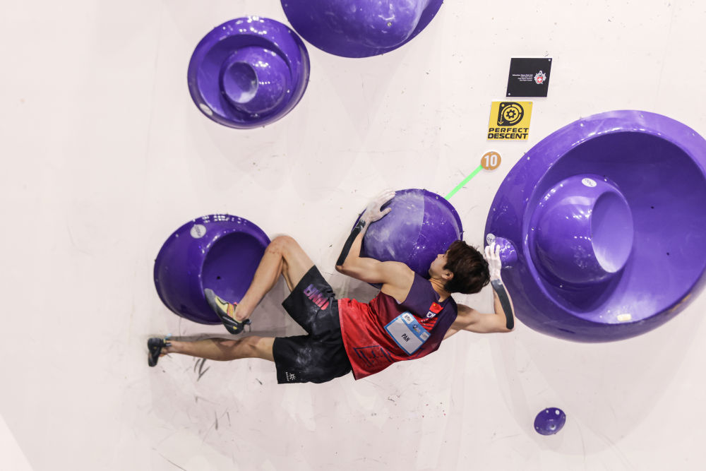 ↑6月15日,潘愚非在2025年攀岩世界杯伯尔尼站决赛中。