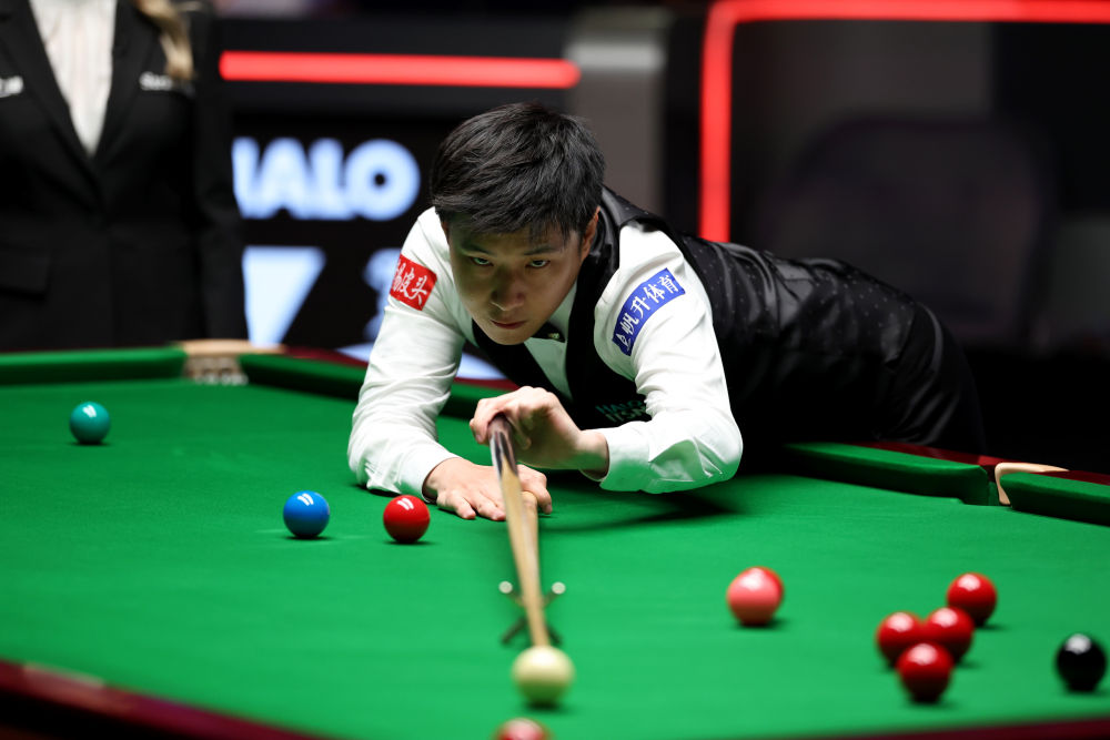 ↑5月5日,赵心童在2025年斯诺克世锦赛决赛中。他成为首位获得该项赛事冠军的亚洲选手。