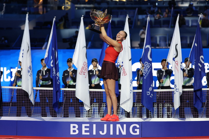 2024年2月25日,中国队教练和运动员在国际乒联釜山世界乒乓球团体锦标赛颁奖仪式上高举男子团体冠军奖杯。新华社记者 张涛 摄