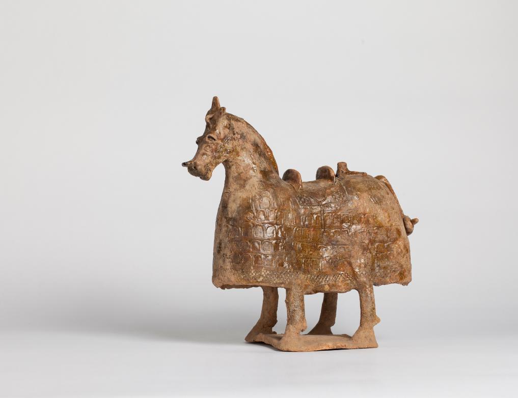 这是此次展出的十六国时期褐釉马铠俑。(受访单位供图)