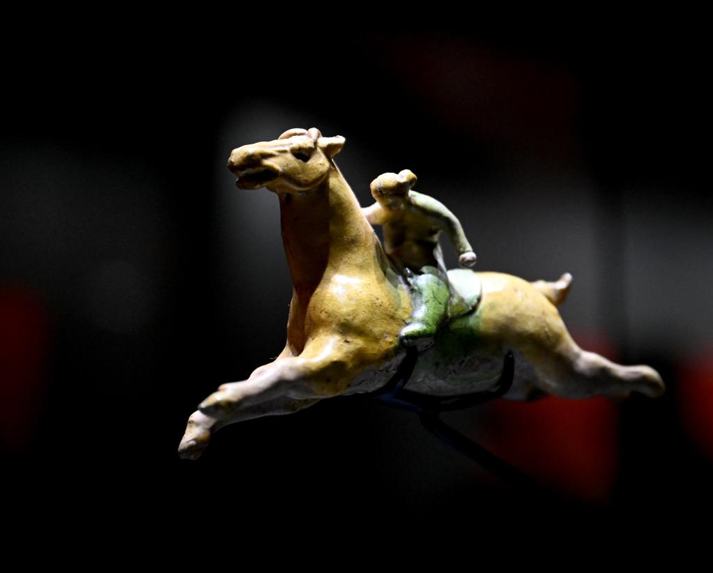 1月1日,这是此次展出的唐代三彩打马球俑。新华社记者 李嘉南 摄