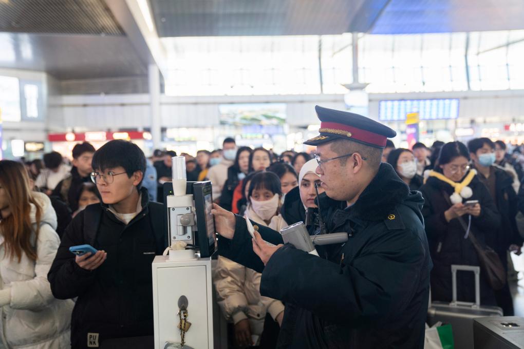 2025年12月31日,天津站工作人员正在服务乘客。新华社发