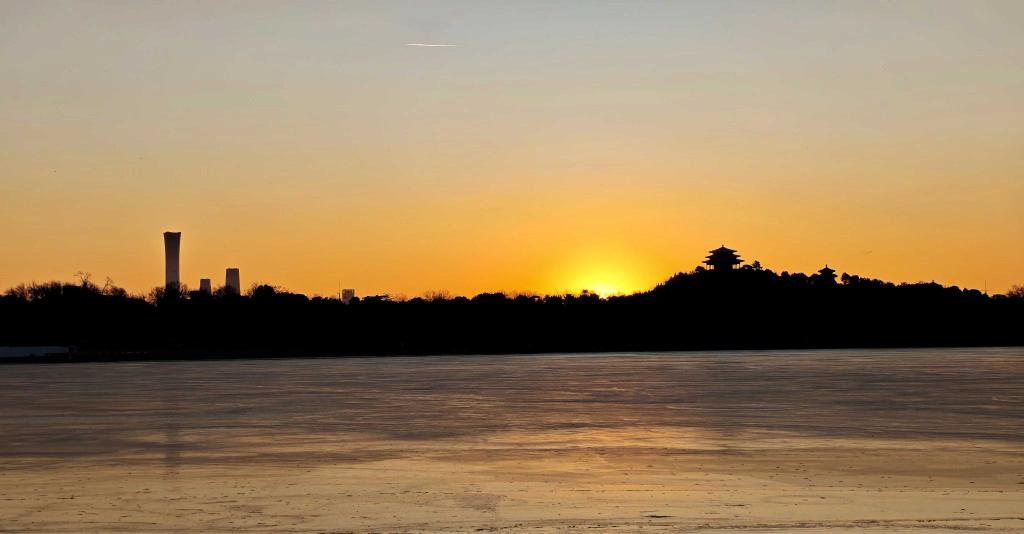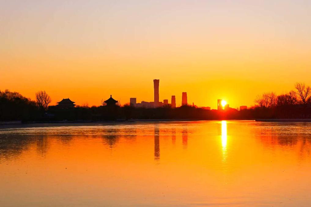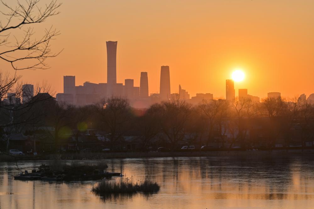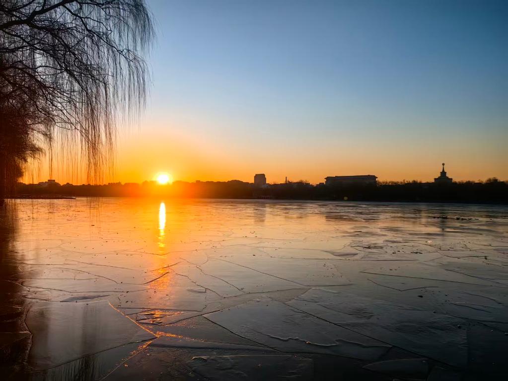 1月1日,在北京什刹海拍摄的日出景象。摄影:田宇