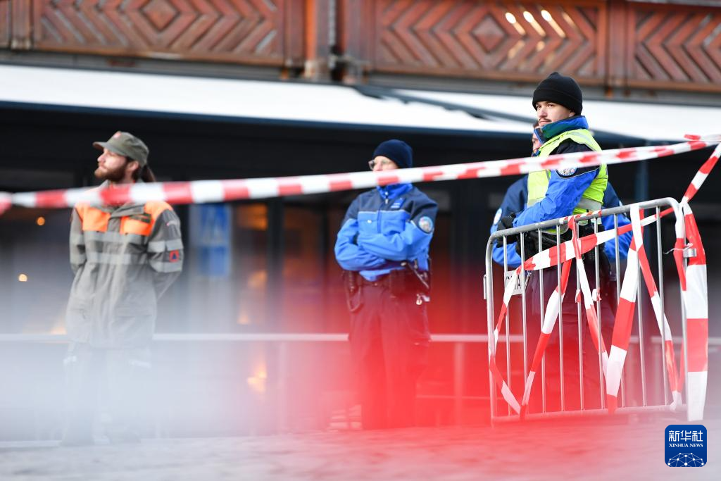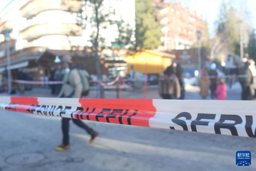 1月1日,在瑞士克朗-蒙大拿,警方在发生火灾的酒吧附近区域拉起警戒线。新华社记者 连漪 摄