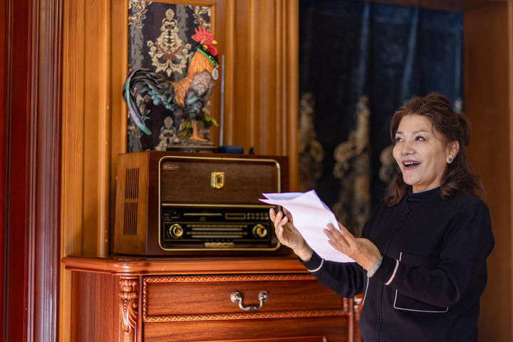 藏族女高音歌唱家巴桑在家中练声(2025年11月6日摄)。新华社记者 姜帆 摄