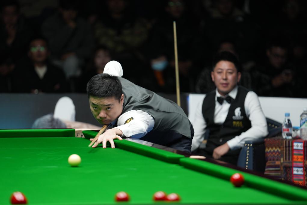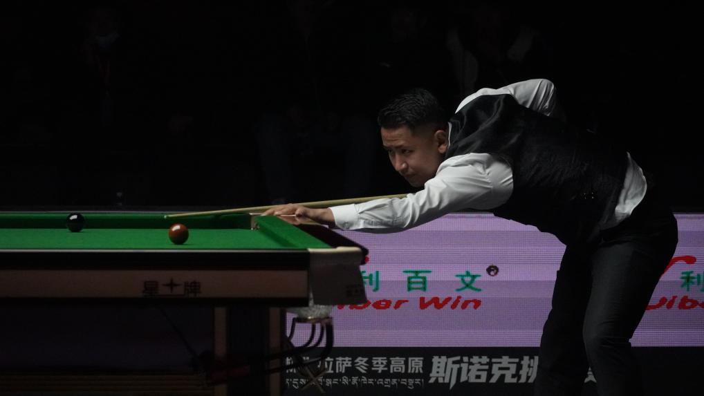 中国选手肖国栋在2025拉萨冬季高原斯诺克挑战赛比赛中。新华社记者 晋美多吉 摄