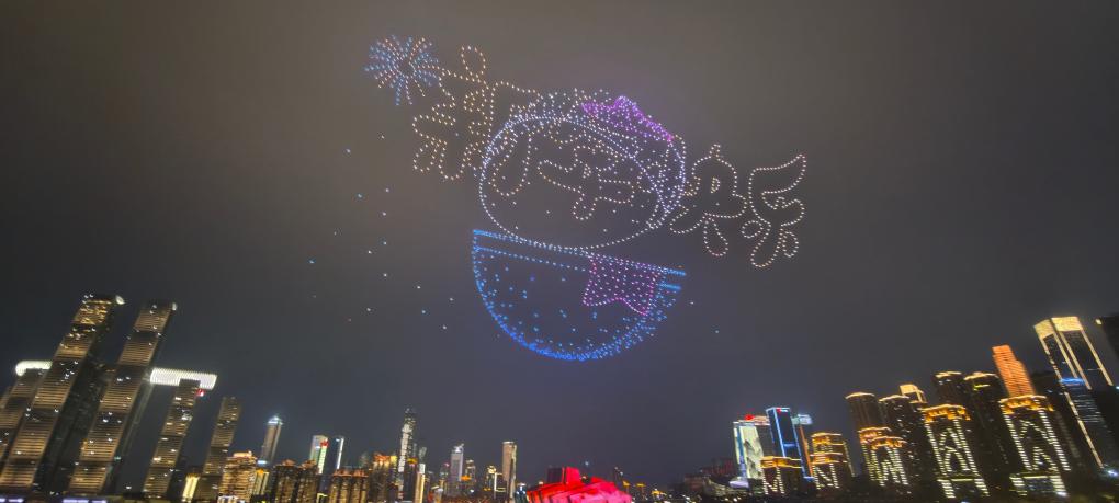 天色暗下来,江对岸的朝天门码头与来福士广场灯光渐起,千家万户的团圆灯火,共同组成无人机灯光秀的“天然画框”。