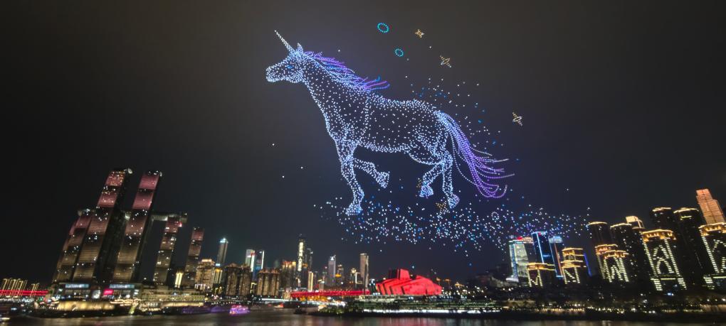 图为1月2日晚拍摄的“新韵重庆”无人机灯光秀。新华社发
