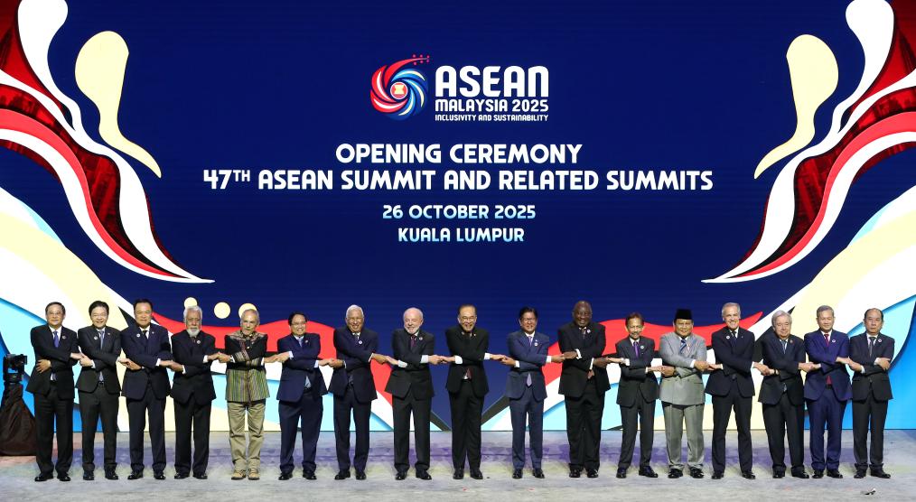2025年10月26日,在马来西亚首都吉隆坡,嘉宾在第47届东盟峰会及系列会议开幕式上合影。新华社记者岑云鹏摄