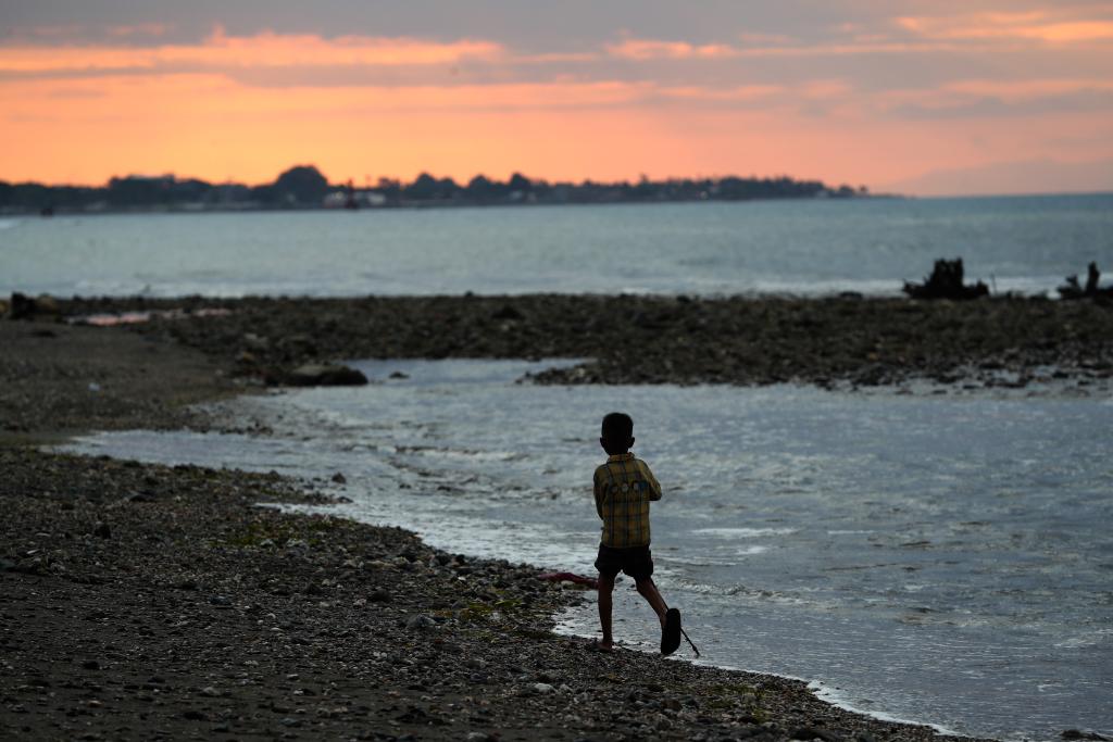 2025年9月17日,在东帝汶帝力的海滩上,一名儿童在海边跑步。新华社记者岑云鹏摄
