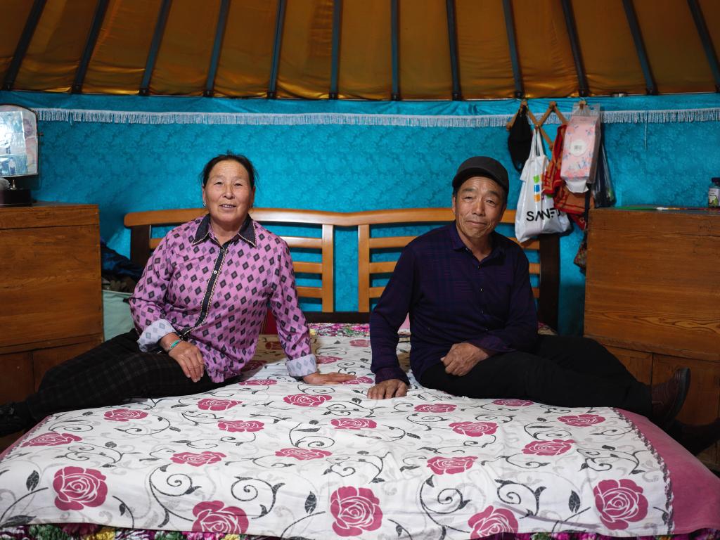 2025年9月23日,达来(右)与妻子合影。新华社记者 刘金海 摄