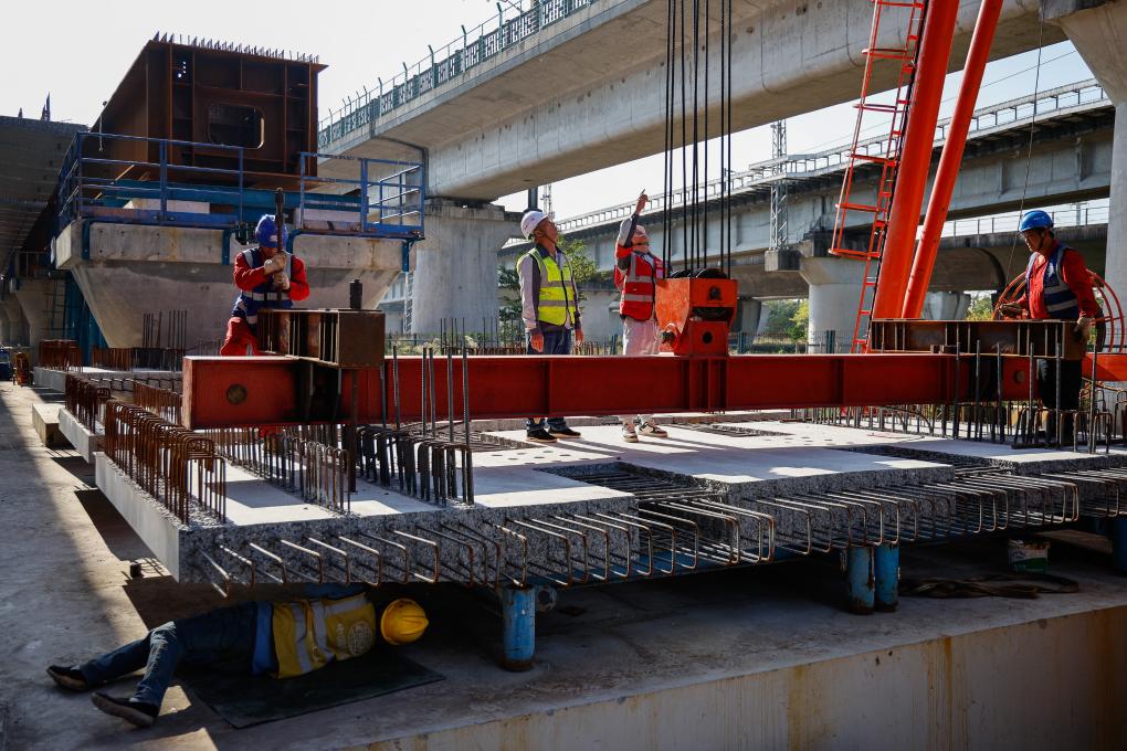 2025年12月21日,网格安全监督员在施工现场检查吊装设备。新华社记者 邓华 摄