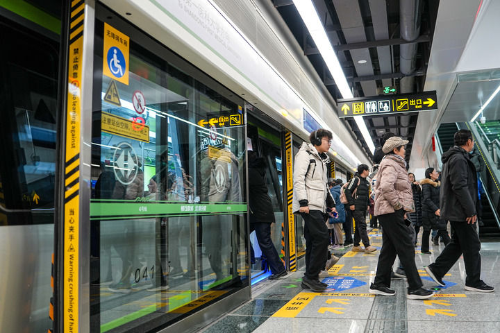 2025年12月27日,市民乘坐济南轨道交通4号线出行。新华社记者 朱峥 摄