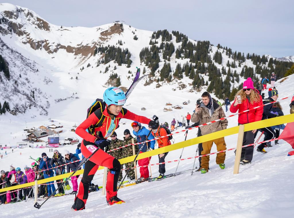 ↑2020年1月13日,中国选手于婧萱在洛桑冬青奥会滑雪登山女子个人短距离半决赛中。新华社记者陈益宸摄