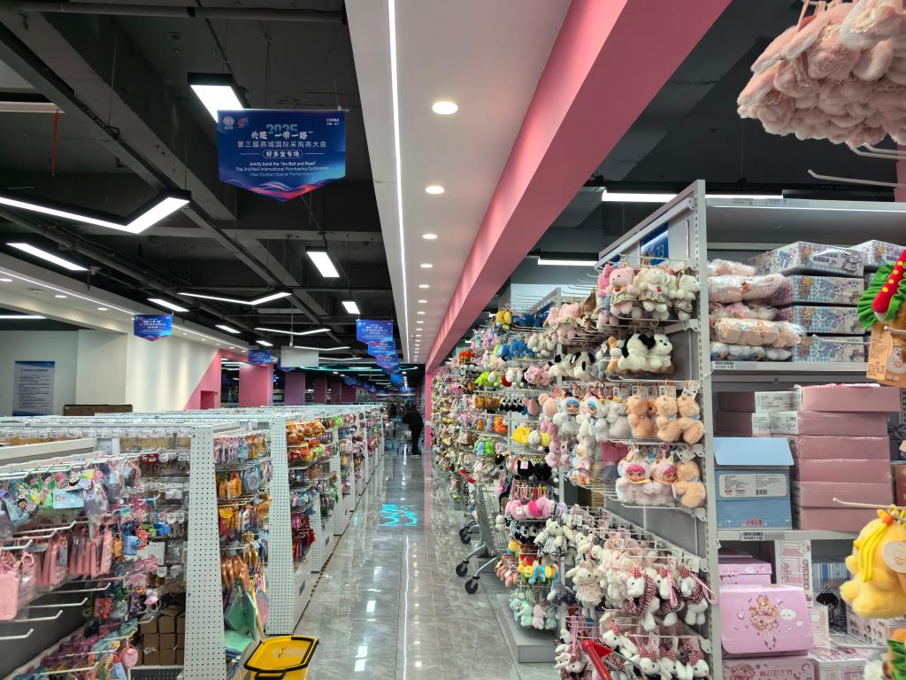 本地商户也在探索“出海新模式”。在山东好多宝供应链有限公司一处上万平方米的“多元店”里,文创文具、毛绒玩偶、厨房用品、家居百货等数万种商品整齐陈列,零售价从3元至10元不等。
