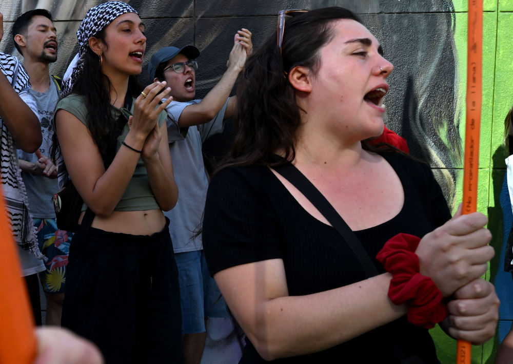 1月3日,智利民众在首都圣地亚哥的美国大使馆外举行集会抗议美国的军事行动。