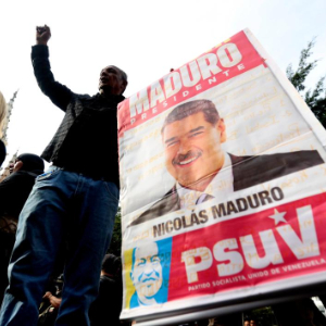 1月3日,支持马杜罗总统的民众在委内瑞拉首都加拉加斯总统府附近举行抗议活动。