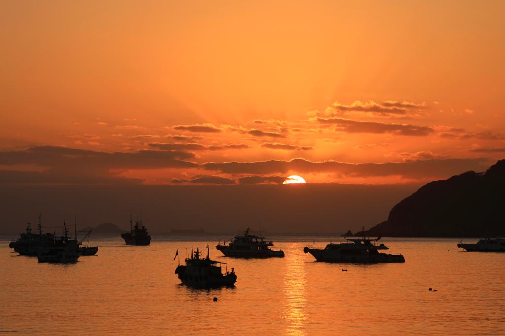 2025年1月1日在浙江省舟山市朱家尖乌石塘景区拍摄的日出。新华社发(邢守秒 摄)