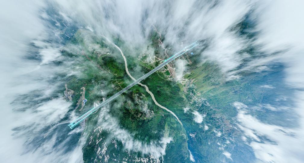 2025年9月26日拍摄的贵州花江峡谷大桥。贵州花江峡谷大桥全长2890米,主跨径1420米,是目前世界山区峡谷第一大跨度钢桁梁悬索桥;其桥面距水面垂直高度625米,是新的世界第一高桥。经过三年多建设,贵州花江峡谷大桥将于9月28日正式建成通车。新华社记者 欧东衢 摄