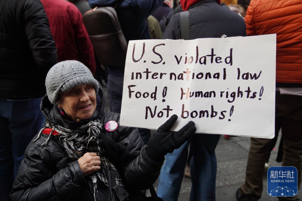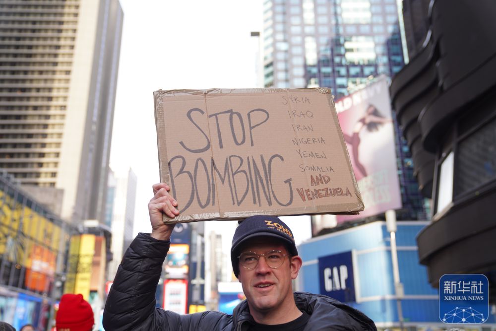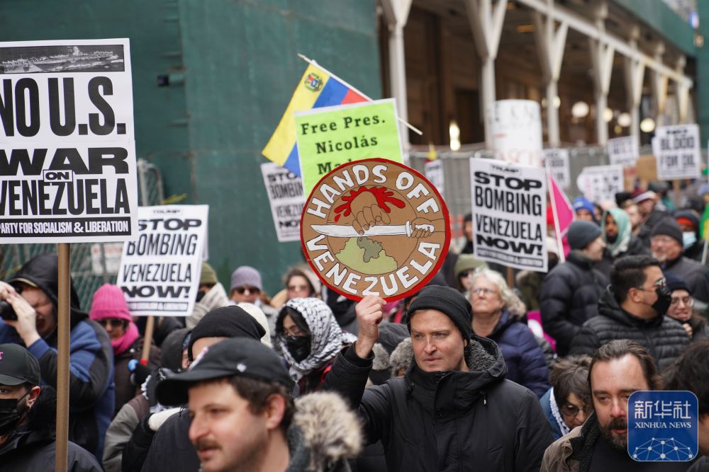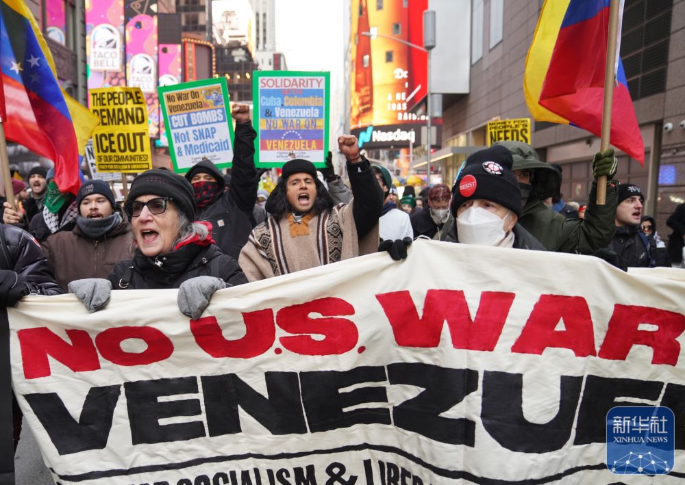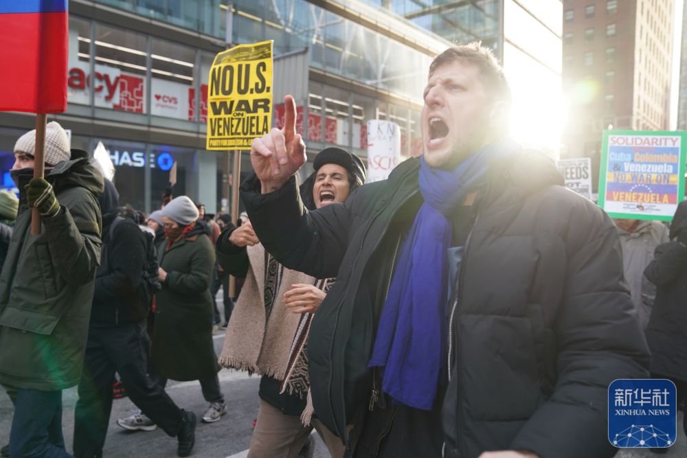 镜头直击丨纽约民众抗议美国空袭委内瑞拉-新华网