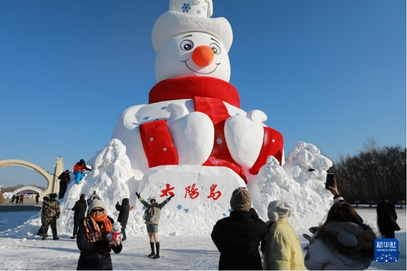 第二十七届哈尔滨冰雪大世界园区内的大雪人。
