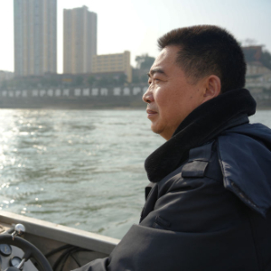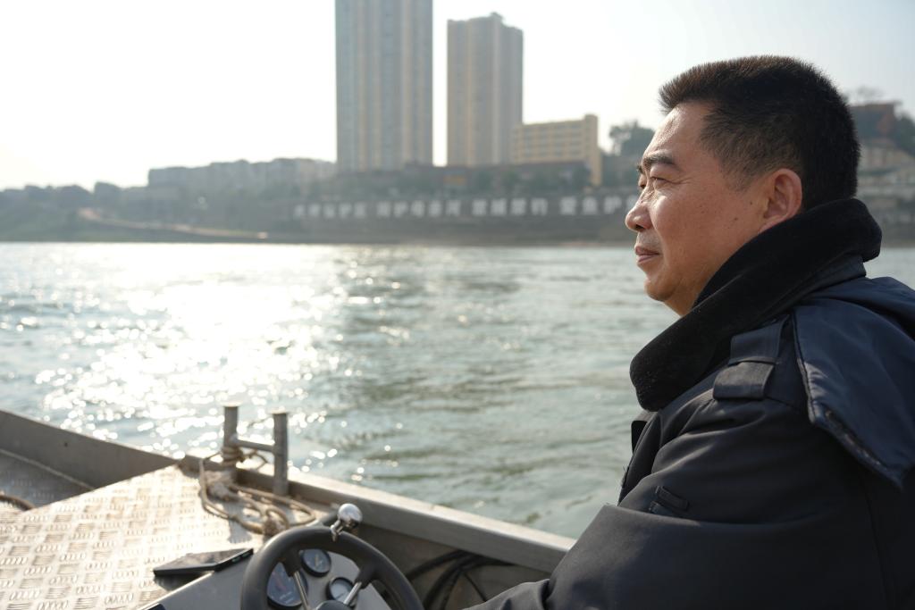 刘鸿正在开船巡护长江江津段。新华社记者田金文 摄