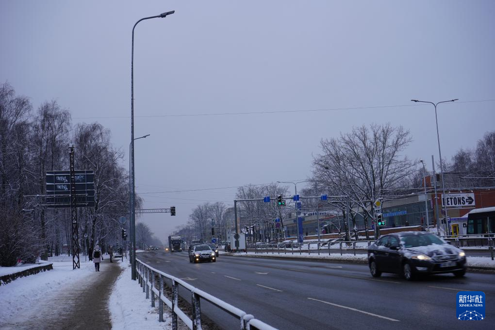 1月7日,在拉脱维亚里加,汽车在道路上行驶。新华社记者 陈玉芬 摄