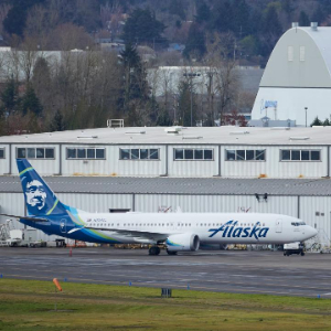 2024年1月6日,美国阿拉斯加航空公司发生事故的波音737 MAX 9型客机停靠在美国波特兰的一处维修站。新华社/美联