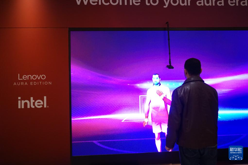 1月7日,一名男子在2026年美国拉斯维加斯消费电子展(CES)联想展台参观。 新华社发(曾慧摄)