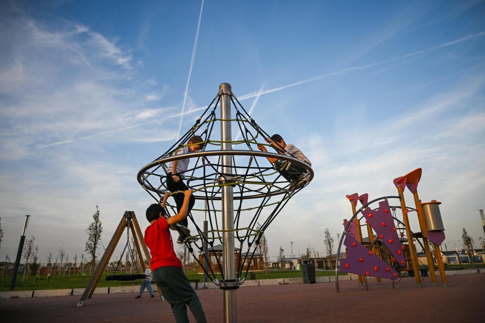 2025年11月21日,儿童在土耳其伊斯坦布尔阿塔图尔克机场旧址玩耍。新华社记者 刘磊 摄