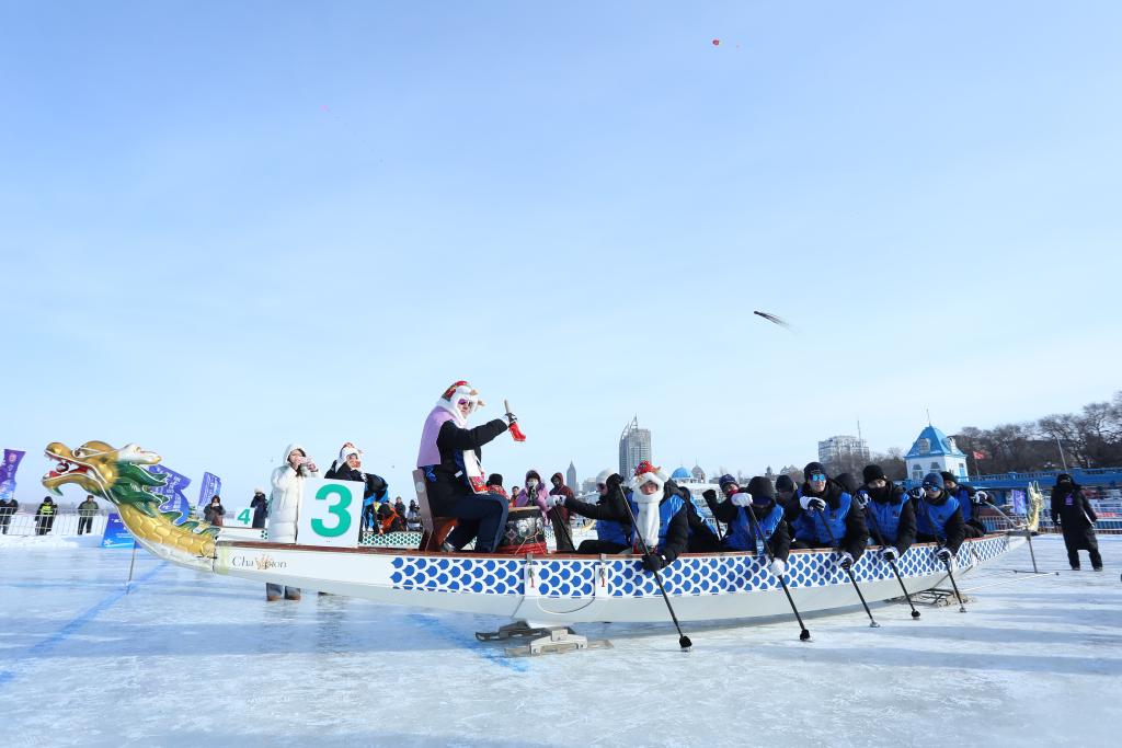冰封的哈尔滨松花江上,一声声激昂的加油呐喊声响起。