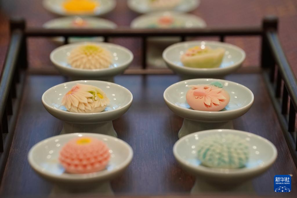 唐果子,是起源于唐代的传统特色糕点,佐茶而食,其造型精致、色彩丰富,曾在唐代宫廷贵族中流行。在西安,有着多年烘焙工作经验的“80后”李欢,一次偶然的机会与唐果子结缘。2020年,李欢与志同道合的伙伴成立公司,创立了“开元风雅”品牌,李欢也成为了品牌的主理人。她和团队埋首于唐代饮食文献之中,行走于各大博物馆内,从唐代文物的花纹图案中汲取灵感,结合健康饮食和现代口味需求精心调整配方,成功“复现”出一枚枚精巧的唐果子,受到人们的欢迎。