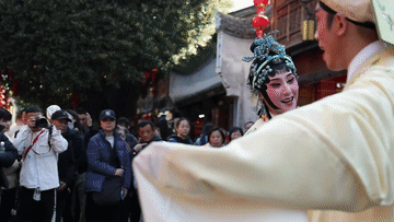 1月10日,一场闽剧快闪表演在福州三坊七巷热闹上演。
