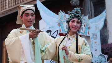来自福建省实验闽剧院的青年闽剧演员们,化身为闽剧电影《双蝶扇》的主人公,美妙的声腔流转于古厝巷陌中,演绎传统戏曲与当下生活的深情对话。众多市民游客驻足观赏,感受古今交融的千年闽都韵味。