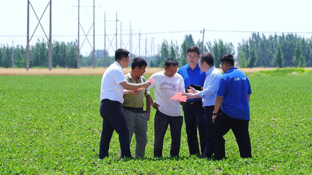 银河期货及太平洋财险正在为青岛花生种植户讲解花生“保险+期货”收入险项目的具体要点。(郑州商品交易所供图)