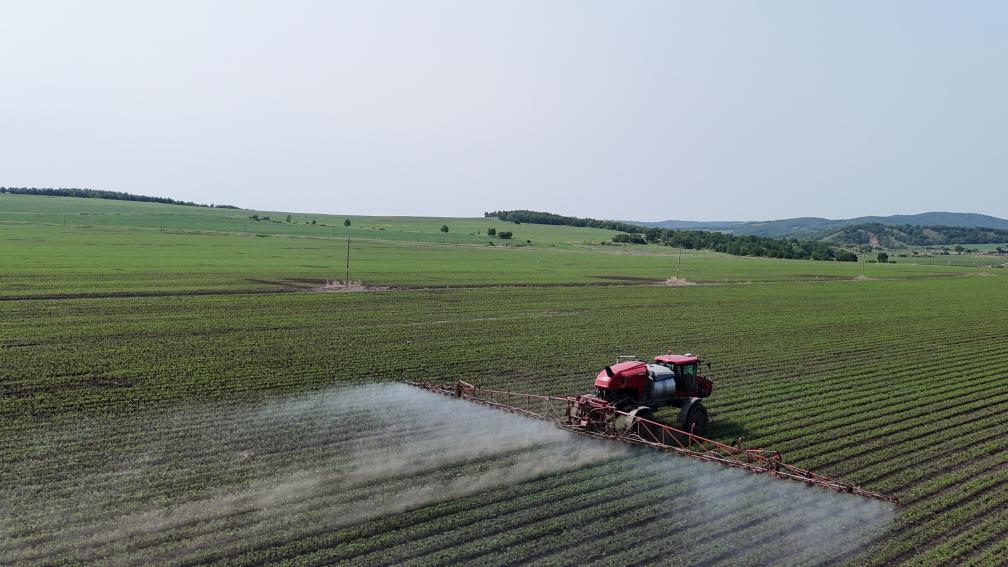 2025年5月,黑龙江嫩江科洛合作社正在使用现代农机实施田间打药。(大连商品交易所供图)