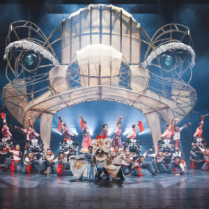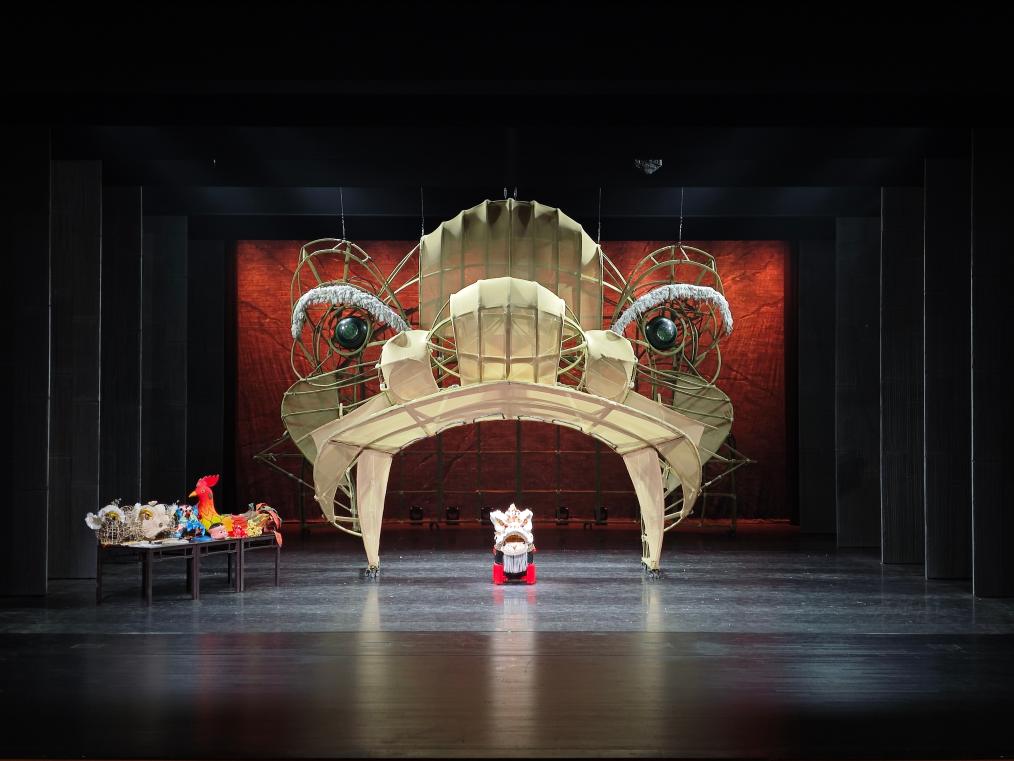 1月10日至11日,由广州歌舞剧院创排的舞剧《醒·狮》在醒狮起源地广东佛山巡演。18名男演员舞起9头威风凛凛的醒狮,站上鼓面向前迈进。霎时,灯光熄灭,舞台上出现了用竹片龙骨架搭建的巨型醒狮造型,它睁开双眼,目光如炬,全场掌声雷动、一片惊呼。
