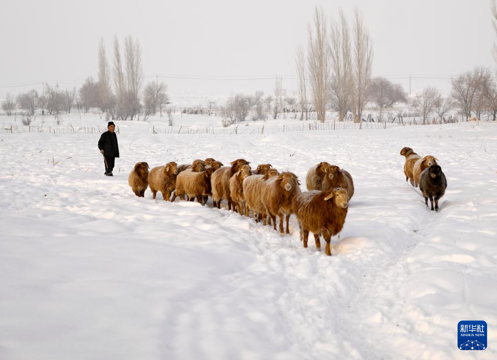 1月13日,牧民在新疆阿勒泰市阿苇滩镇雪都村牧羊。新华社发(叶尔江·木哈买提 摄)