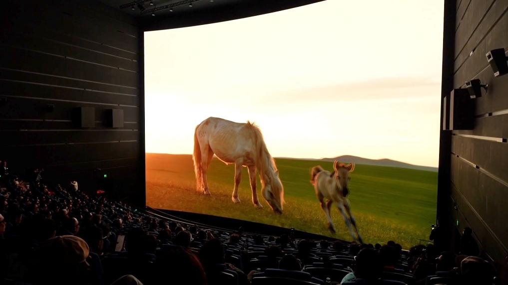 近日,全球首部生肖动物巨幕电影《马到功成》在上海科技馆内巨幕影院举行首映。该屏幕融合4K、3D、高帧率等多项技术,同时也应用了中影集团新一代的CLED透声屏方案。